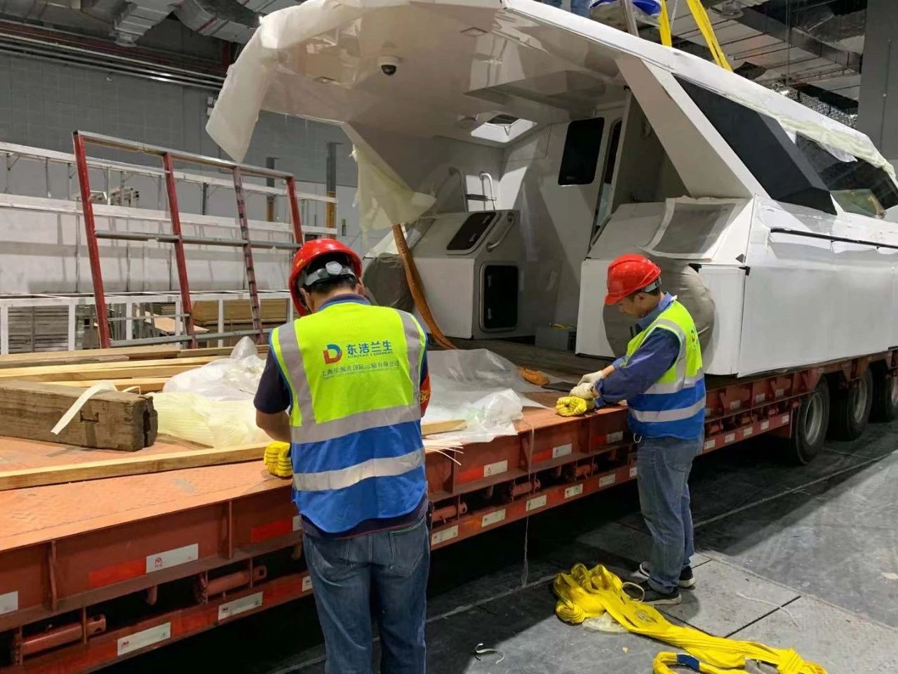 依佩克为第二届进博会首件进馆的展品——意大利法拉帝巡逻船提供专业服务