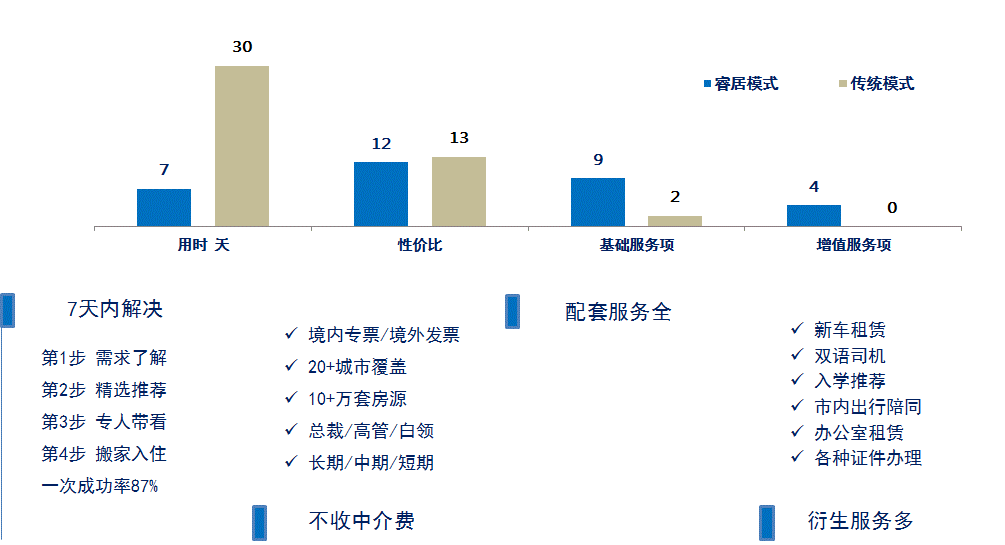 上海外服集团联合中国知名酒店管理公司中富旅居联合组建的上海外服睿居公司。外服睿居依托上海外服卓越的品质服务、创新的技术平台、精益的管理流程和遍布全国400 多个服务网点,同时借力中富旅居在全球公寓投资及运营管理方面的丰富成功经验、优秀运作管理能力,专注企业服务,为企业提供员工安置、差旅、及员工住宿服务等服务产品。