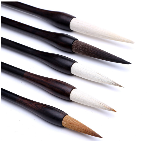 “笔之所贵者在毫”,制作毛笔笔头所用的兽毛禽羽,称为笔毫。笔毫有羊毛、紫毛、兔毛、狼毛、貂毛、马毛、猪鬃,其他如狸毛、鼠须、人须、胎毛、鹅毛、鸡毛等,而最为大众所知的有羊毫、狼毫、兔毫和兼毫四大品种。