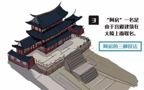 而最后一种观点认为,“阿房”一名是由于宫殿建筑在大陵上而取名。