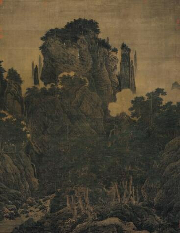李唐履历复杂,最具传奇性。他48岁才参加北宋画院的入院考试,是宋徽宗时的画院待诏。当时考题是《竹锁桥边卖酒家》,别的考生还在努力描绘酒家风貌时,他却把酒家藏在苍翠之间,只在桥头的竹林外露出一根竹竿,竿上飘着一面“酒”字旗子。这份答卷紧扣题眼,把酒家“锁”在了观者不见之处,却又让人清楚感受到它的存在,徽宗十分喜欢。《万壑松风图》(现藏台北故宫博物院)是迄今发现的唯一一件李唐(58岁)在北宋画院时的作品。