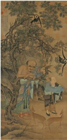 《罗汉图》 ,南宋,刘松年, 绢本设色,纵117 厘米,横55.8 厘米,现藏台北故宫博物院
