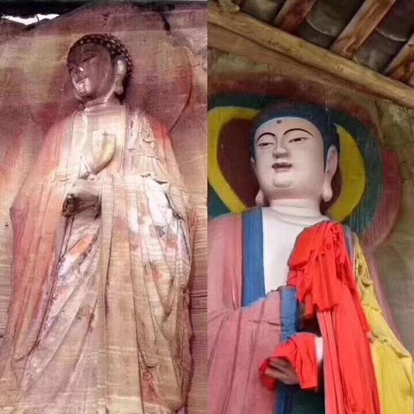 四川省安岳峰门寺古代石刻造像重绘前后对比