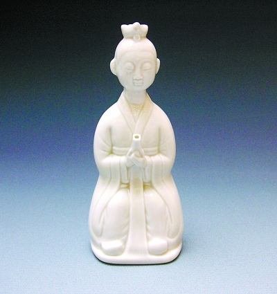 顺义净光舍利塔基出土的白釉童子诵经壶,构造巧妙,是一千多年前定窑人形瓷器中的精品,令人过目难忘。