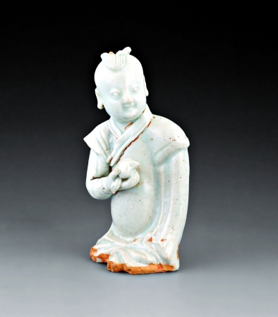青白釉持桃童子