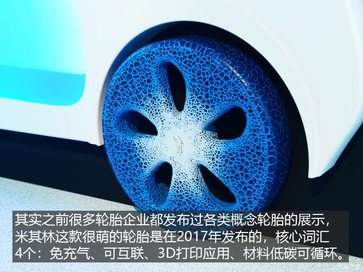 在2017年,米其林曾推出过一款很梦幻的名为Vision概念轮胎,造型Q弹的它描述了4个核心概念:免充气、可互联、可定制(3D打印技术应用)、材料可再生,而今天发布的新品则是Vision概念胎的延续作品,同时米其林也表示,这四个概念将会逐步运用到量产产品中,而本次的新品就是对免充气技术的量产化应用。