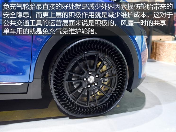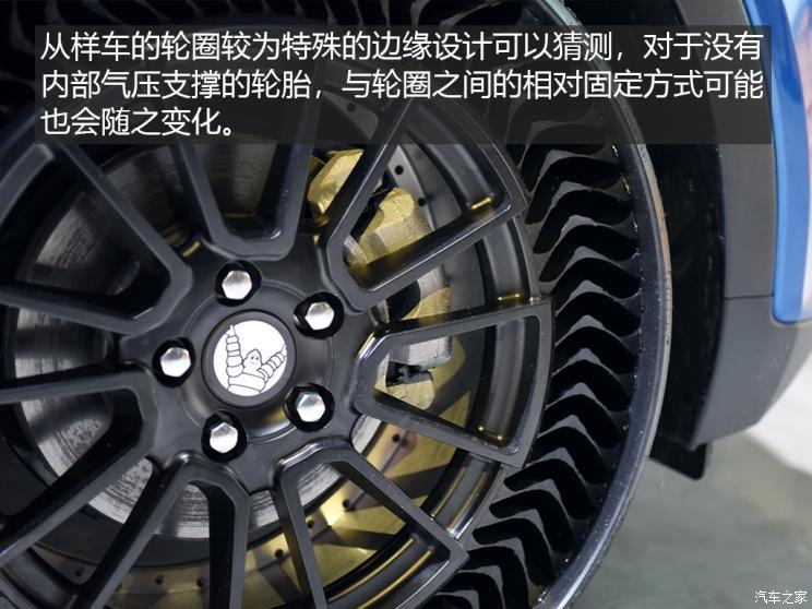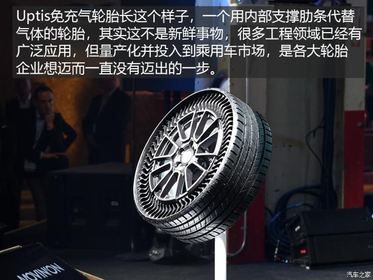 此轮胎在现场已经被装在了一辆雪佛兰Bolt上,这并不是空穴来风,而是通用和米其林进行研发层面的合作推动此产品的应用,今年下半年通用汽车将有一组雪佛兰Volt车队对于Uptis免充气轮胎继续进行实际测试和验证,所以还有一段时间才能真正在马路上看到它,目前消息是计划于2024年正式投放到市场中。