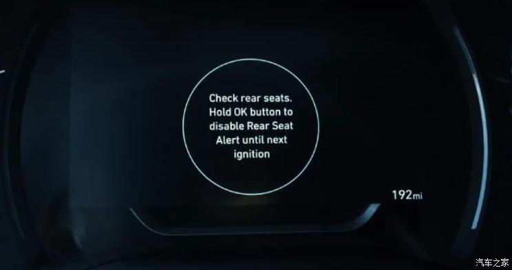 第一种,创建警示提醒。用户可在仪表板屏幕上看到该提示。当驾驶员关闭车辆电源准备离开车辆时,会接收到图像及声音提示,提醒驾驶员关注后座乘员状态。