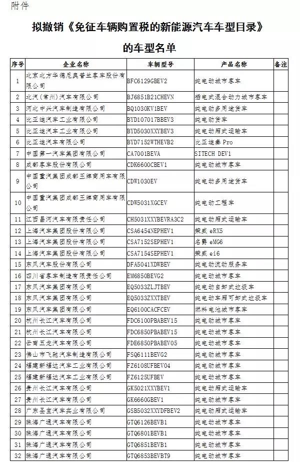 工信部近日发布消息,根据相关要求,对《免征车辆购置税的新能源汽车车型目录》实施动态管理。经统计,第二十一批《目录》于2018年11月发布后,共有141款车型在12个月内无产量或进口量,拟从《目录》撤销。此次撤销包含比亚迪秦Pro、荣威eRX5、知豆D3、威马EX5 PRO等车型。