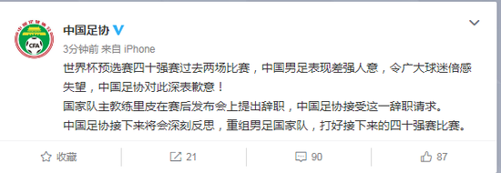 世界杯预选赛四十强赛过去两场比赛,中国男足表现差强人意,令广大球迷倍感失望,中国足协对此深表歉意!